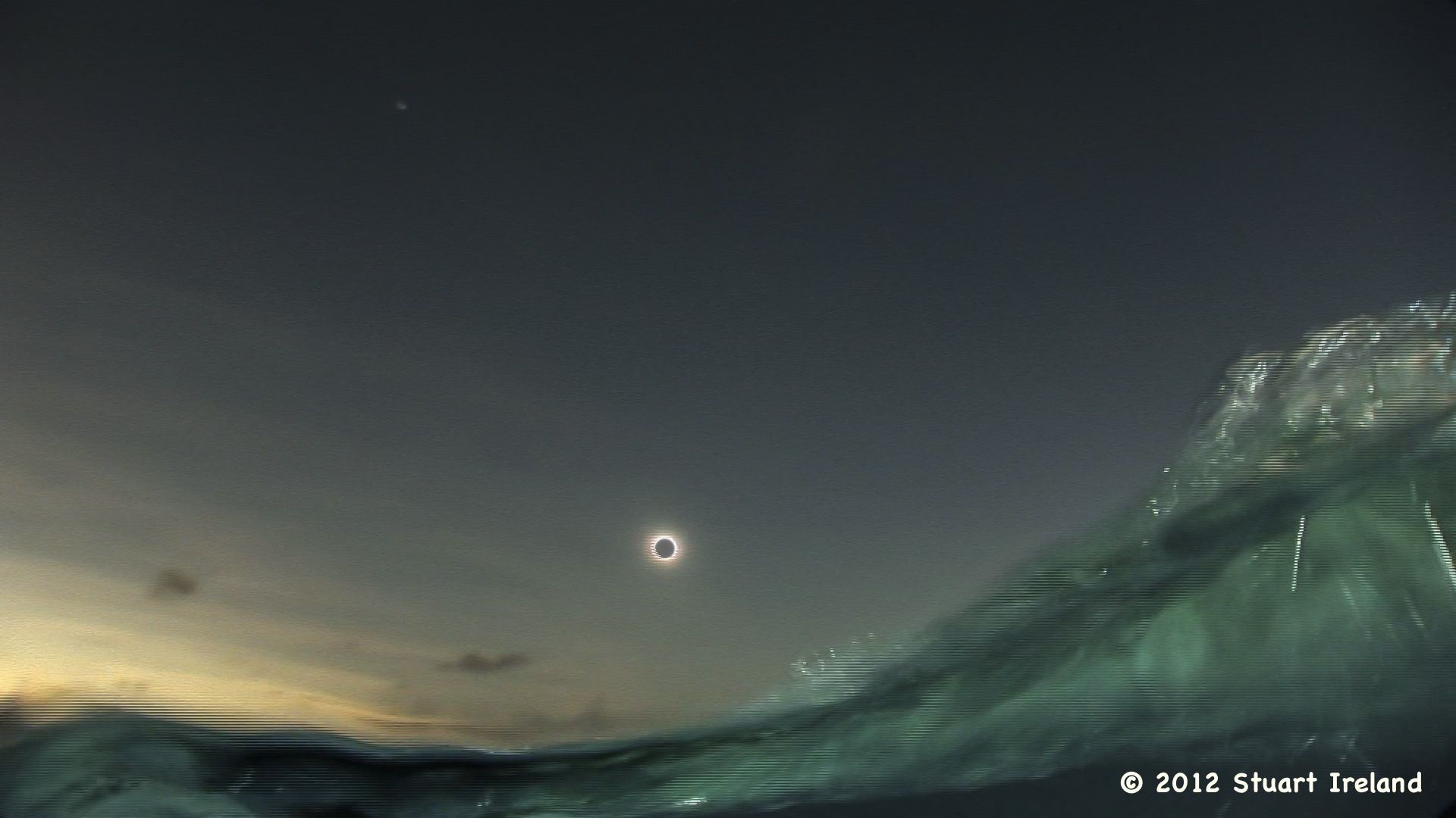 First up is Stuart Ireland – underwater videographer of Calypso Productions – who will share his unique short video of filming the eclipse from the reef – underwater. Stuart then surfaced during totality and took my favourite eclipse shot ever of totality alone in the waves. Stuart’s story is featured in my book “Totality 2012”.