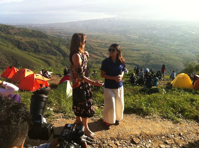 As predicted, and as we expected, there were low clouds all morning, with some breaks allowing views through the sun spotters and scopes that the NASA team had set up. Everyone cheered when the clouds parted, which was happening with increased frequency.